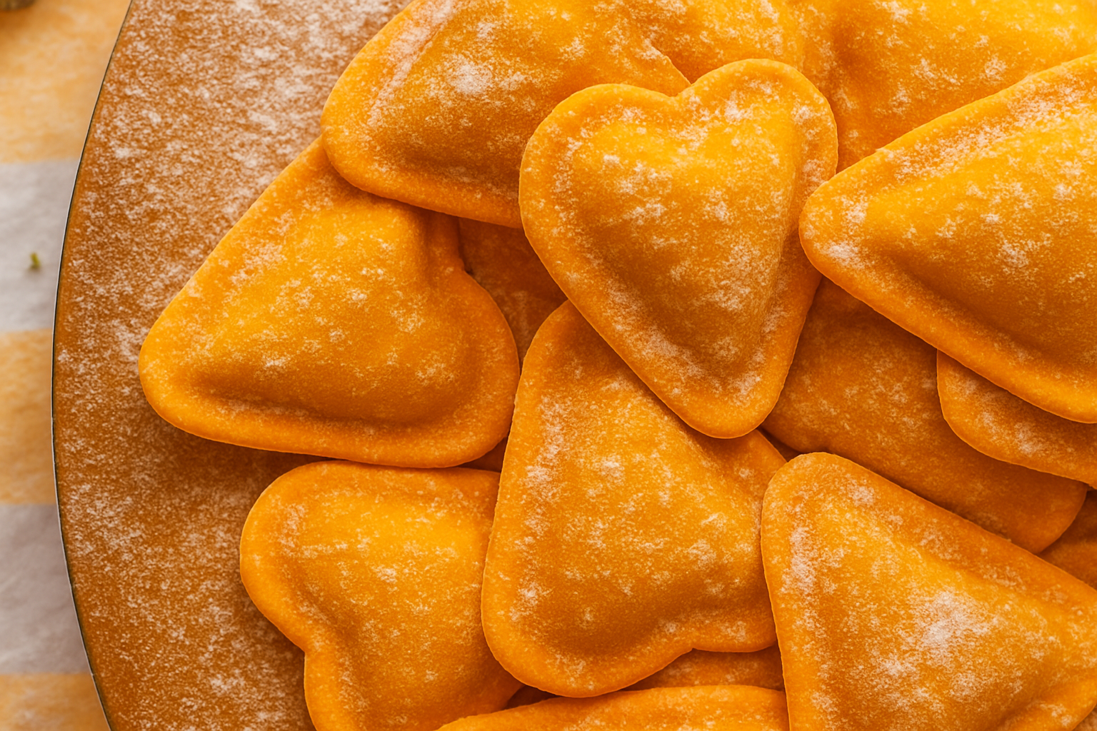 Ein saisonaler Bestseller - Scharfer Gorgonzola Käse mit Kürbis in Form von roten Herzchen.